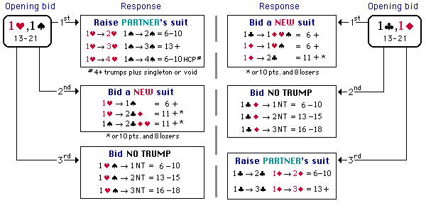 - Do not raise Partner's minor suit (1♣ or 1♦) but bid a new suit or bid NT