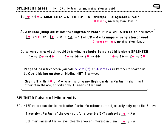 13-15 pts = jump bid 4+card suit, jump bid NT
