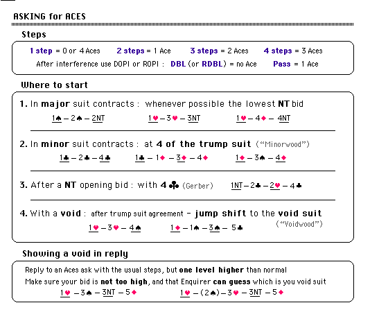 - In minor suit contracts use 4 of the minor trump suit to ask for Aces.